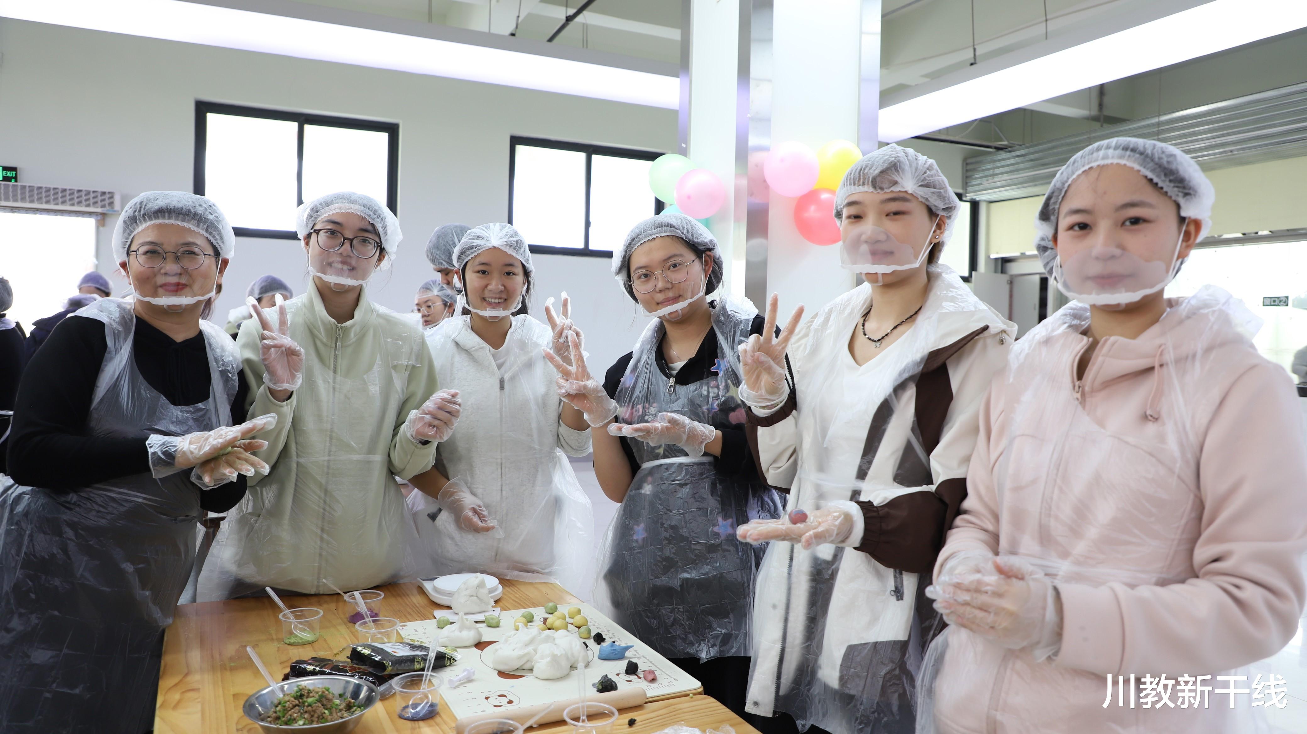 后勤集团餐饮事业中心员工彭春花为现场师生详细演示了汤圆的制作方法。随后,师生们揉面团、包馅料、搓汤圆。一个个圆润饱满、形态各异的汤圆在大家手中诞生,承载着师生们对新年的美好憧憬。