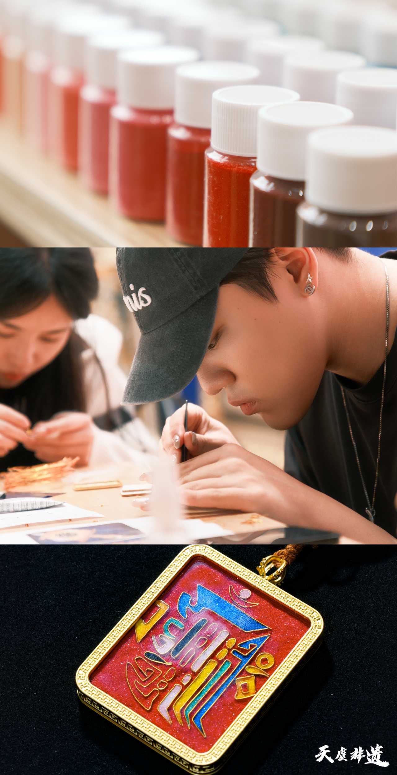 体验区里,不同年龄、不同身份的新手们都沉浸在创作中:亲子组合并肩协作,妈妈帮孩子扶着底托,孩子捏着镊子认真调整金丝弧度,小小的指尖虽略显生疏,却满是专注;年轻的上班族暂时放下工作的忙碌,低头勾勒着纹样,在金丝与颜料的碰撞中享受慢时光;还有独自前来的爱好者,跟着老师的讲解一步步操作,从最初捏镊子的手抖,到后来能流畅弯折出规整的线条,成就感溢于言表。