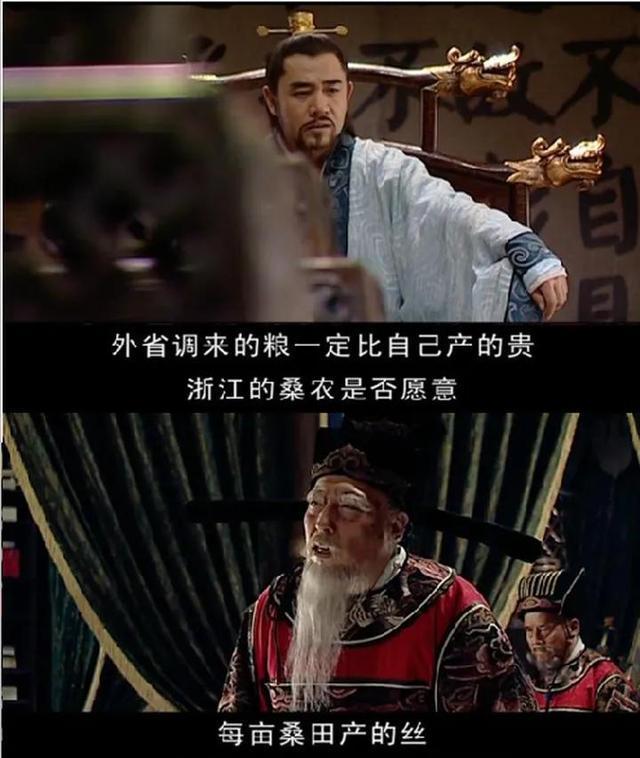 重点来了,这才是朝议的核心议题。我不在意你们如何争执,也不关心你们如何争斗。嘉靖帝所关注的,一是宫殿如何重建,二是如何增加财政收入。严嵩提出的观点并无不妥,增加收入的关键在于开源节流。然而,关键在于如何实施开源,以及节流措施是否真正有效。关于开源,提出的方案是让浙江百姓改种桑树养蚕,以丝绸为主要出口商品,粮食则从外省调入。但粮食并非无偿提供,而是需要购买。这与北宋王安石的青苗法有相似之处,政府主导的售卖往往伴随着问题,如短斤少两、以次充好。严嵩提出此方案的原因有两点。一是当时中国最具竞争力的商品是丝绸,只能通过丝绸赚取白银。二是严嵩对浙江有信心,因为当时的浙江总督胡宗宪是他的学生,政绩卓越,抗倭有功,在当地享有较高威望,由他推行此事可行性较高。最后,嘉靖帝做出决定,要求桑田的赋税不得高于农田,这算是给浙江百姓的一点保障。然而,这并未减轻百姓的负担,购买粮食时他们已难以承受。正如张养浩诗中所述,无论国家兴衰,百姓总是受苦。