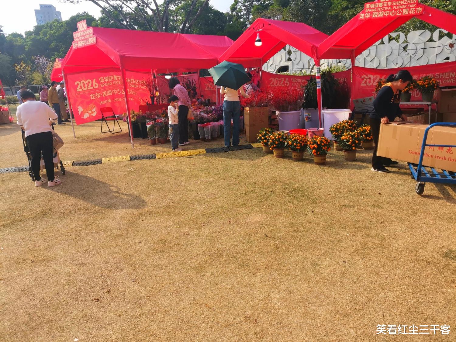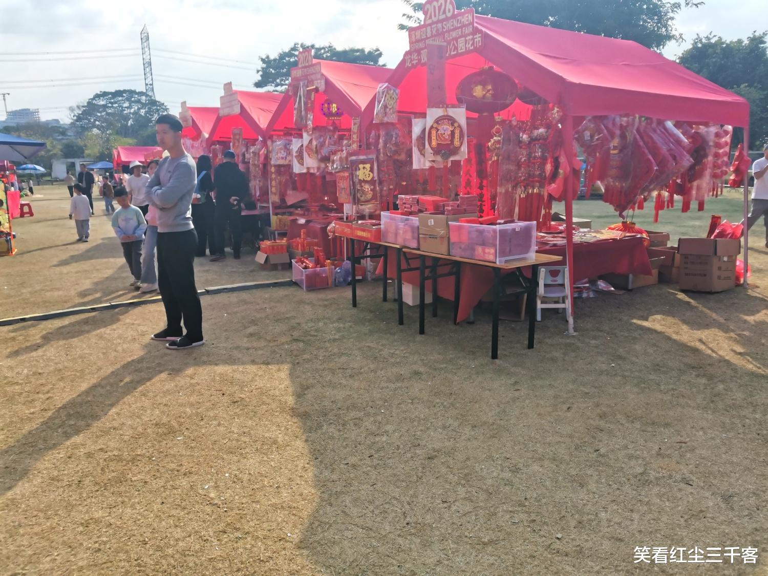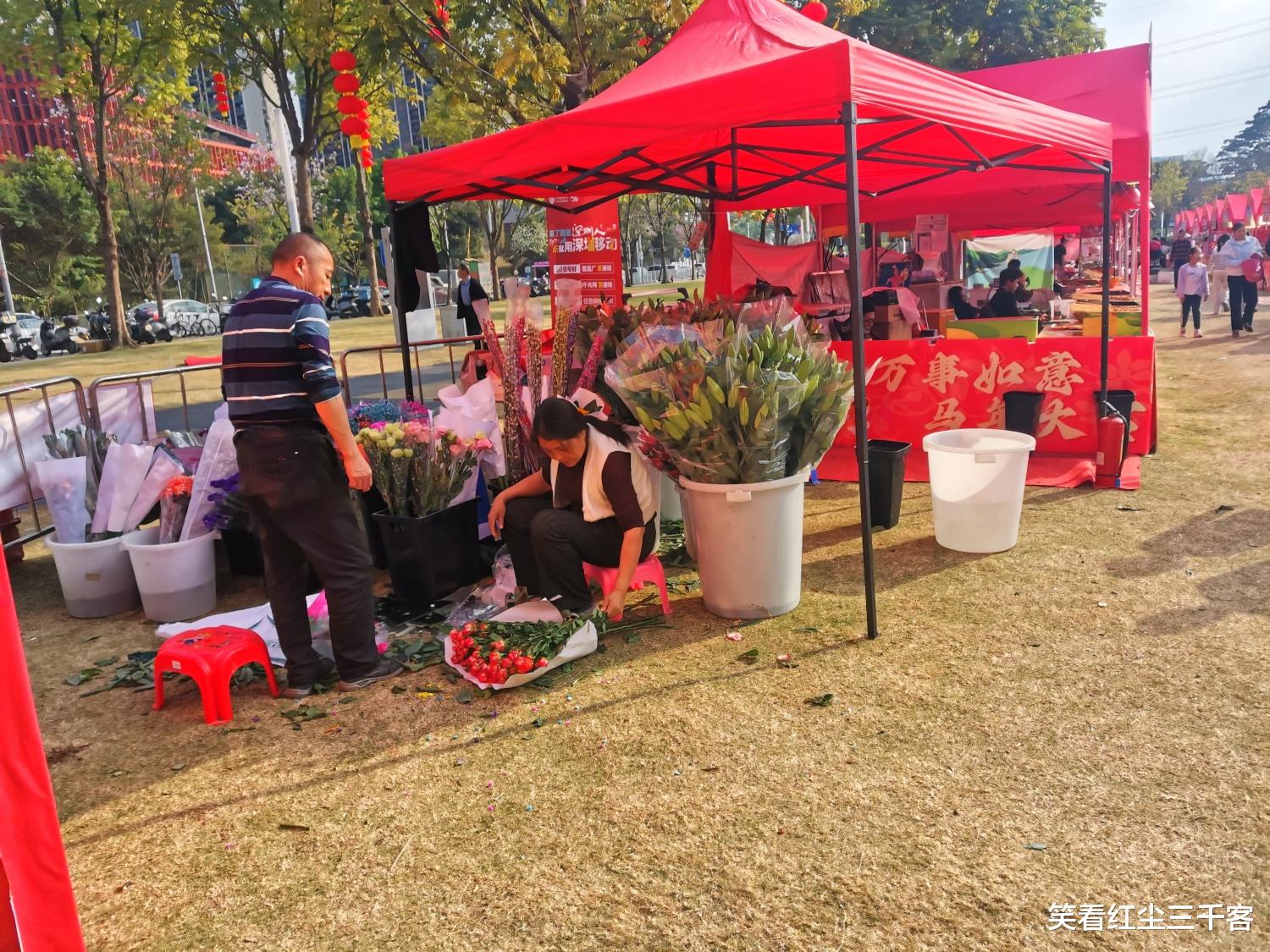 花市举办在空闲的草坪上,虽然规模不算太大,但也给附近的居民带来了方便,可以就近购置春节花卉以及春联等年货。