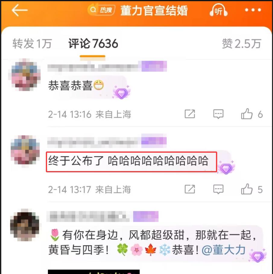 这条官宣微博一经发出,话题 #董力结婚#迅速登上热搜榜首。