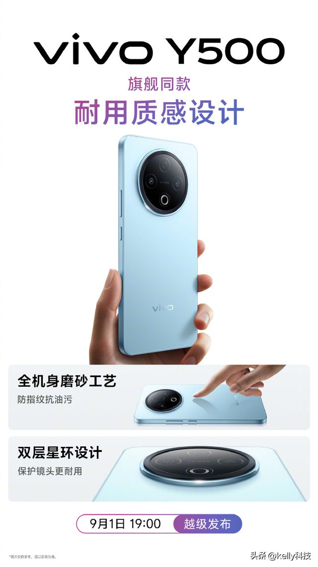得益于vivo始终在线的审美品位,大家可以看到,这次的vivo Y500颜值真的很不错。、三款清爽配色、经典直屏、双层星环设计、全机身磨砂工艺……让这款手机看起来简约的同时又不失高级质感。