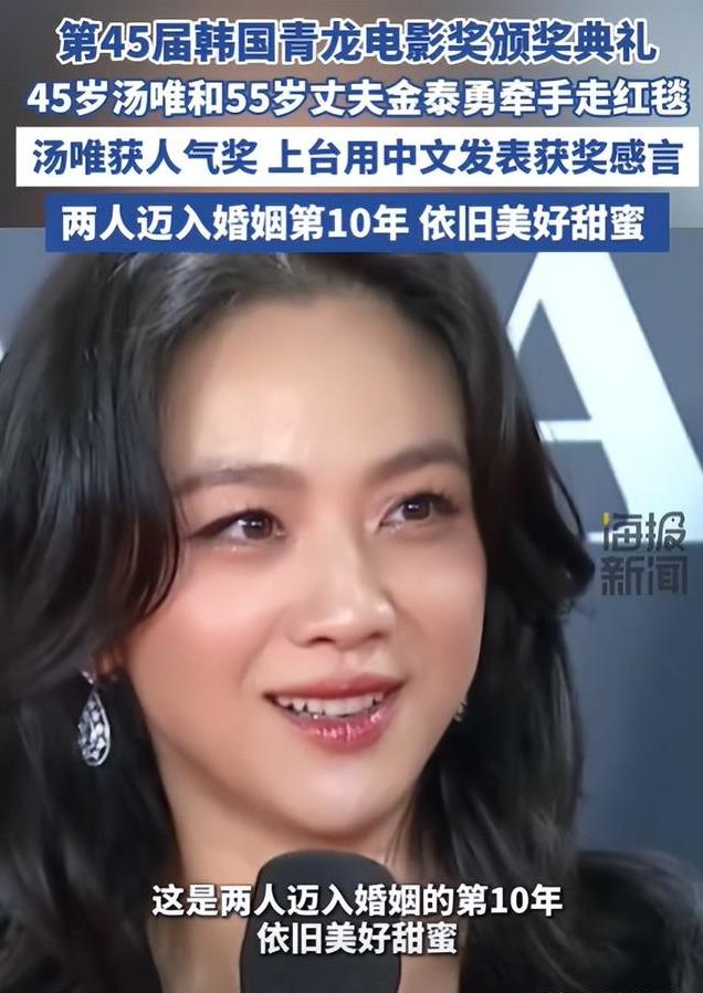 比较巧合的是,在被网友偶遇之后的11月29日,汤唯与韩国老公金泰勇携手现身于韩国第45届青龙电影节众星红毯现场。