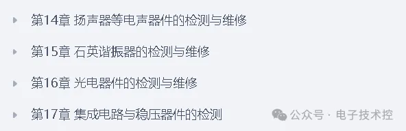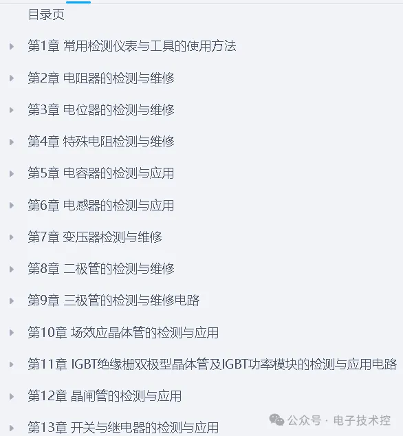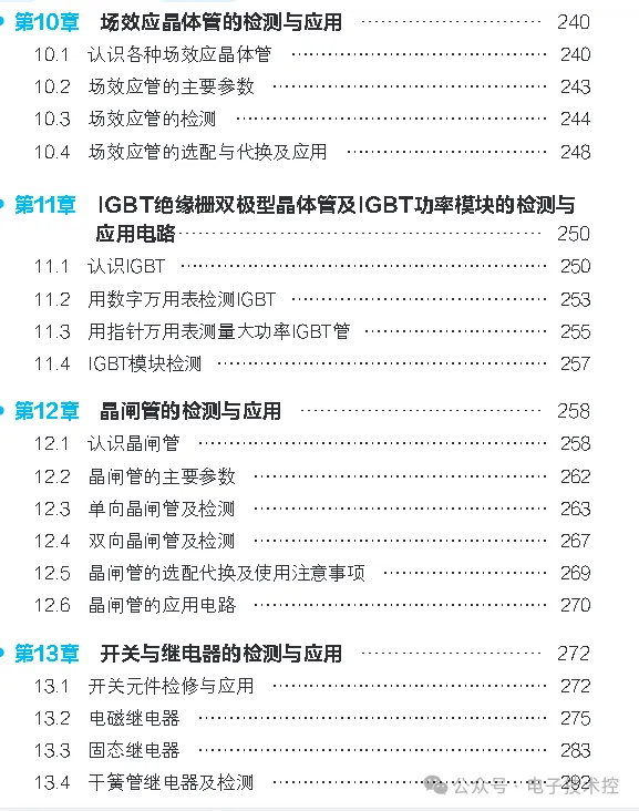最常用、最实用的电子元器件,全面介绍了各类电子元器件的类型、符号、主要参数、性能特点、应用电路与维修技术,主要有电阻器、电容器、电感器、变压器、电机类、二极管、三极管、场效应管、晶闸管、继电器类、开关、耳机、扬声器、蜂鸣器、石英晶体、集成电路、集成稳压器等元器件的检修技术与应用等内容,并附有部分元件参数。