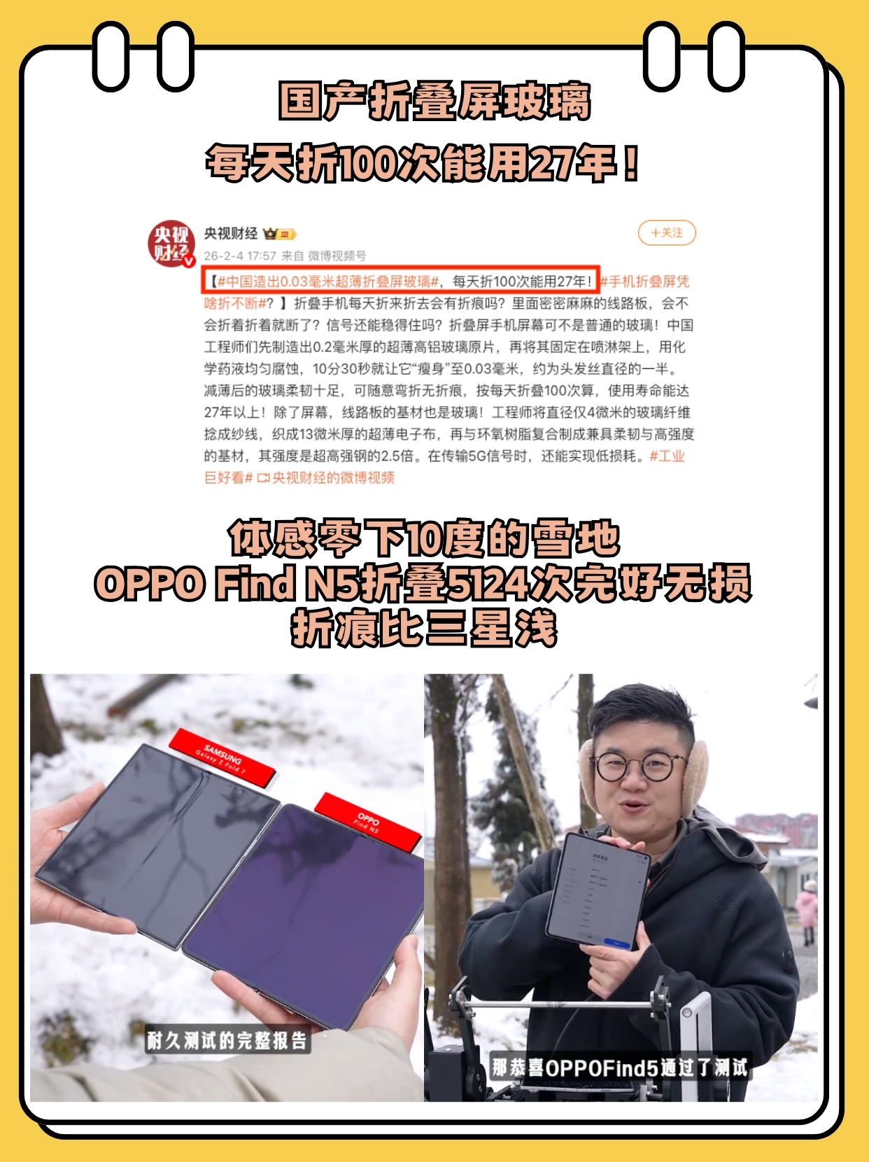 大家别觉得这是实验室数据没啥特别,其实最近还有博主做了折叠屏手机极限挑战。体感零下10度的雪地,将三星Z Fold 7和OPPO Find N5连续折腾了4个半小时,机器共折叠了5124次。结果怎么样?OPPO Find N5不仅扛住了,而且折痕肉眼可见比三星Z Fold 7还要浅,属于是耐用性和三星平起平坐,折痕控制还超越了,所以如果你问苹果折叠值不值得期待,其实我觉得我们有这么多优秀的国产折叠屏,就算苹果出了,也就那样。