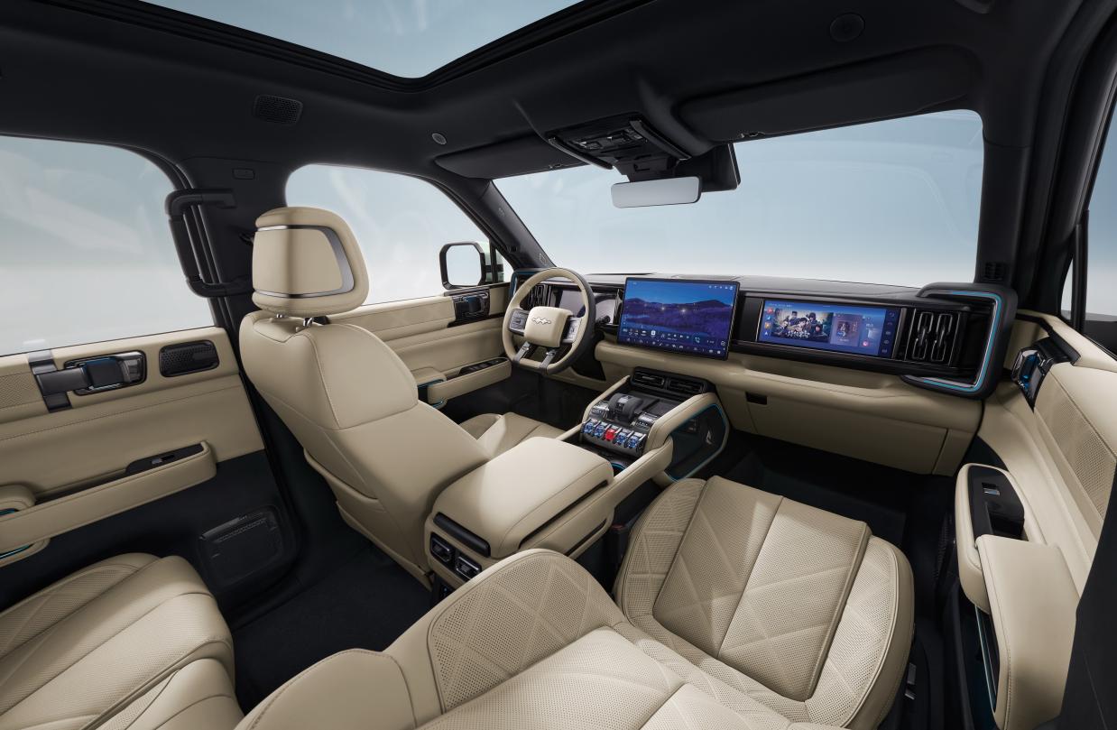 内饰也沿用了老款设计,豪华的同时,兼具了硬派跟科技,车技系统直接提升到了智能座舱的高阶版DiLink 150,增加更加聪明的AI大模型,让“小方”变得更加人性化,在处理各种问题得心应手。