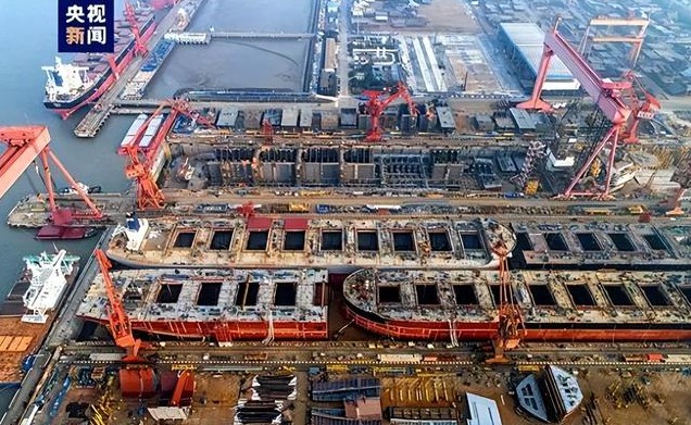 根据美国海军的数据,目前中国拥有75家大型造船厂,56座10万吨级以上的船坞和船台,其中30万吨级以上的超过40座,年造船能力高达2325万吨。