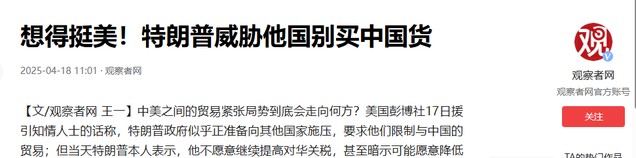 想得挺美!特朗普威胁他国别买中国货——观察者网