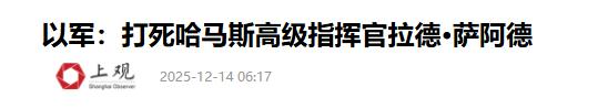 上观新闻——以军:打死哈马斯高级指挥官拉德·萨阿德