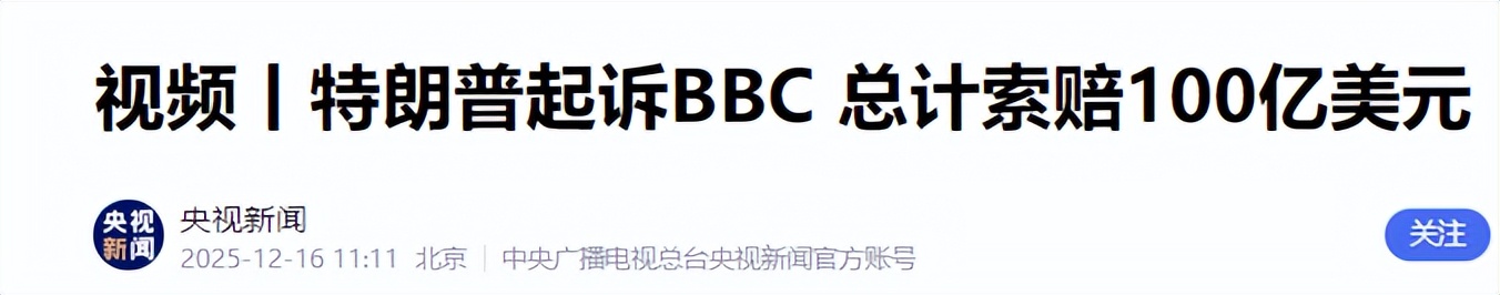 本文信息来源:央视新闻——视频丨特朗普起诉BBC 总计索赔100亿美元