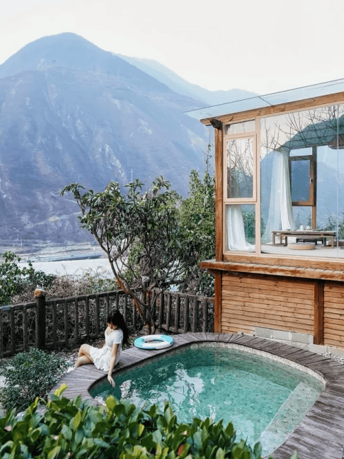 温泉池里的热气和山间的雾气混在一起,远处传来羌寨的欢歌,手里捧着一杯热茶,尽情享受这惬意的时光。