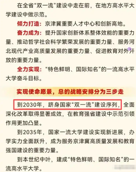 但是谁能想到河北大学最近拉了坨大的。在河北大学官方最近的推文中,竟然出现了学校的愿景规划是在2030年才跻身双一流建设高校之中。