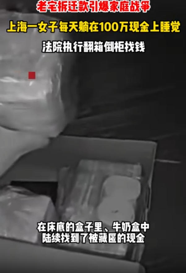 床底下的盒子里、牛奶盒中,成箱的现金码放整齐,连外包装纸都未拆封,上海一位阿姨就这样每晚躺在百万元现金上入眠,直到法院干警上门搜查。