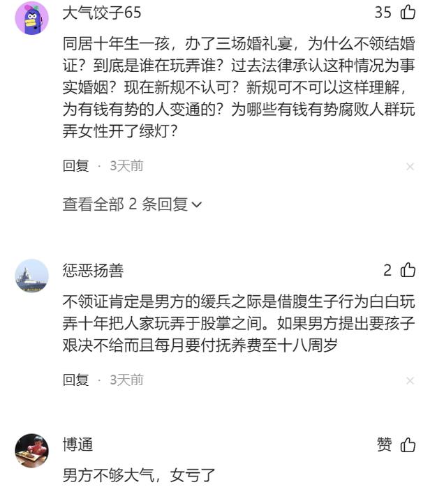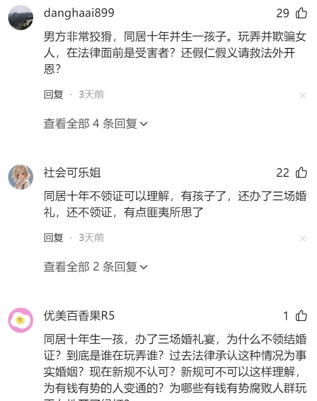 这起事件在网上引发了广泛热议,许多网友纷纷表示,如果法律能够认可事实婚姻,那么这笔钱或许就能作为夫妻共同财产进行分割,女方也就不用承担如此严重的法律后果了。
