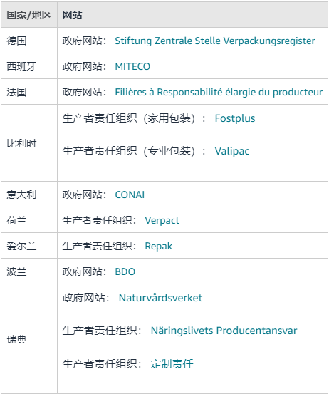 用于生产者责任延伸包装注册的政府网站和生产者责任组织网站