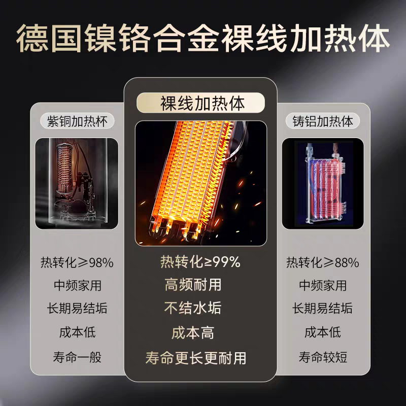 汉诺威源自美国,在国内属于小众品牌,核心优势在于采用了钛金加热管,耐腐蚀、耐高温,使用寿命长达10000小时,远超行业平均水平。其产品搭载智能恒温系统,水温波动范围≤±1℃,出水温度稳定。支持多档功率调节,可根据不同用水场景选择合适的功率,节能效果较好。机身采用防水防尘设计,适配多种恶劣环境,适合农村、老小区等用水条件较为复杂的家庭。