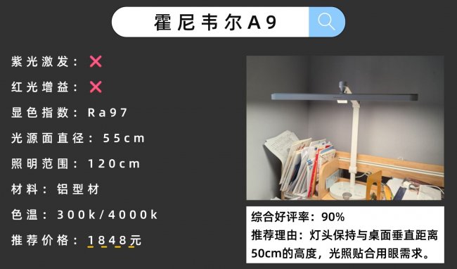 推荐理由:灯头保持与桌面垂直距离50cm的高度,确保光照更贴合用眼需求。