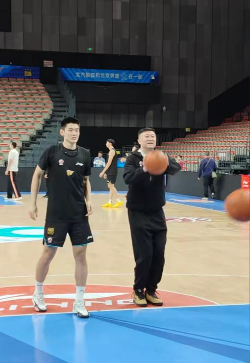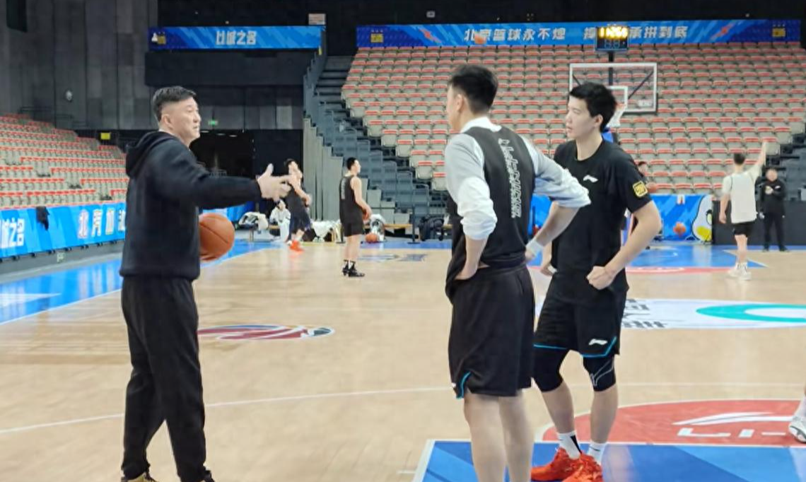 杜锋比较繁忙,他除了现场监督球员训练之外,还特意给两大总分中锋布置专门战术。