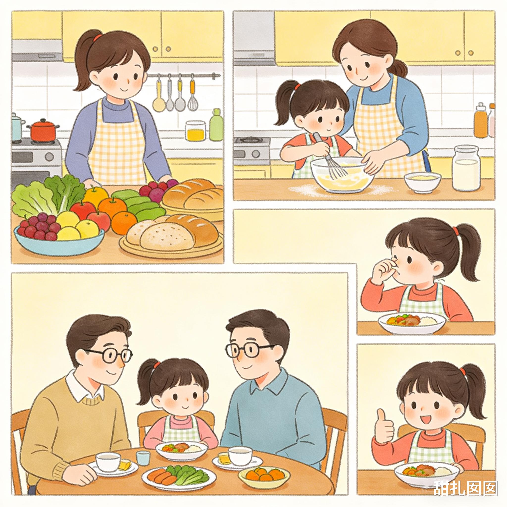 科学原理:自我决定理论指出,自主感、胜任感、联结感是人类基本心理需求。当孩子参与食物准备,三个需求同时满足,抗拒心理自然降低。