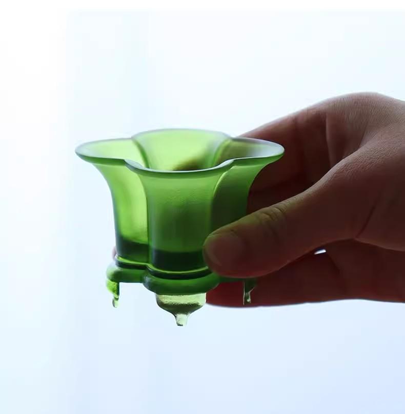 琉璃四叶草海棠香炉采用的是古法脱蜡烧制工艺,这是一门相当复杂的技艺,素有 “火里来、水里去” 的说法 ,需历经几十道工序才能完成。先精心雕塑蜡模,每一刀都精准细腻,只为追求和谐的比例与美感。接着制硅胶模、灌制蜡模,再细修蜡模,任何一个微小的气孔和毛边都不能放过。随后制石膏模,经过蒸汽加温脱蜡,得到耐火石膏阴模。将石膏模与琉璃料放进炉内,慢慢加温到 1000℃左右,让琉璃料软化流入石膏模内成型。待降温冷却后拆除石膏模,取得粗胚,再经过反复的研磨、抛光,直至香炉散发出晶莹的质感 。整个过程不仅费时,对匠人的手艺和耐心更是极大的考验,成品率仅 70% ,且无法回收,每一件都是独一无二的存在,凝聚着匠人的心血与智慧。
