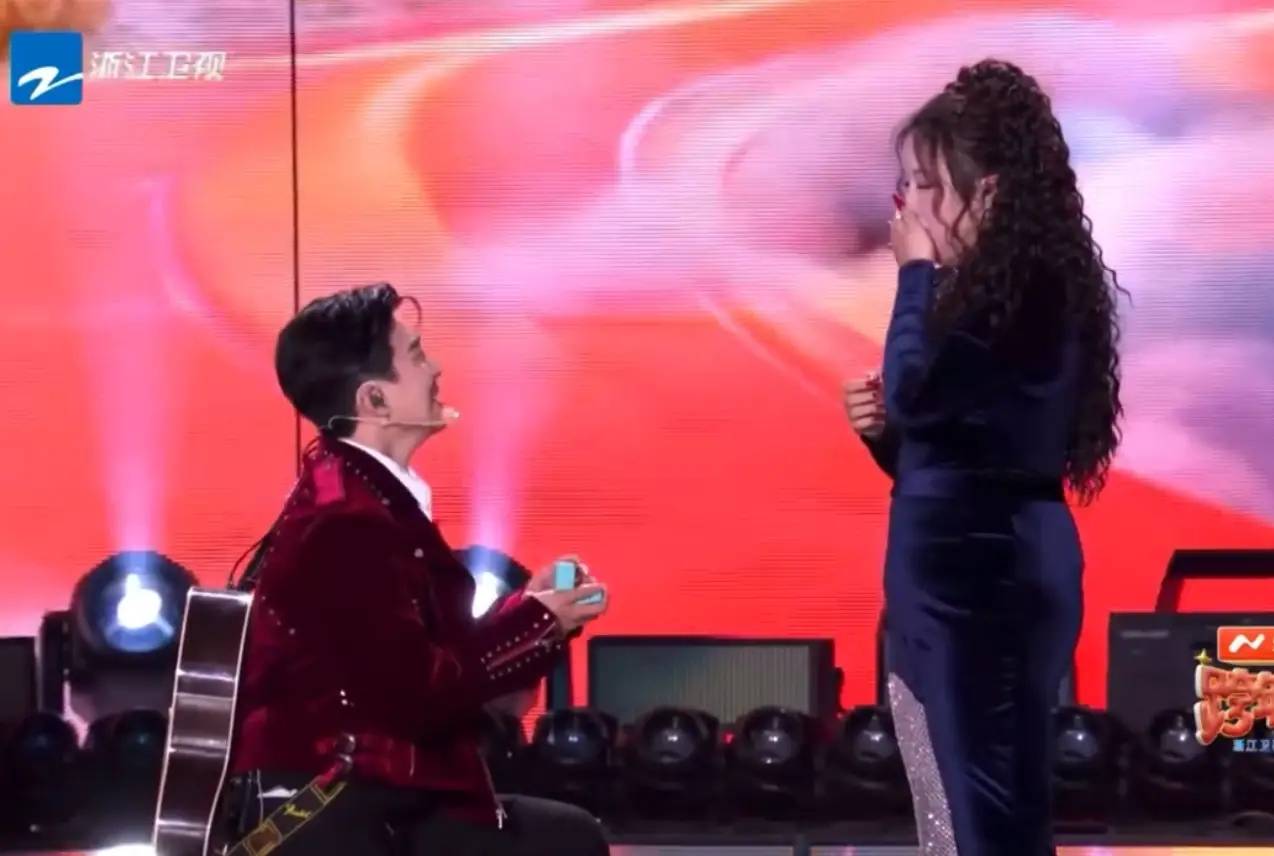 12月31日浙江卫视跨年晚会直播现场,李川与锤娜丽莎合唱完《我的心里只有你没有他》,突然转身拉开后备箱——满箱玫瑰花海倾泻而出,单膝跪地举戒指求婚!锤娜丽莎当场泪崩捂嘴,哽咽着喊出“我愿意”,这波突袭甜炸跨年夜热搜。