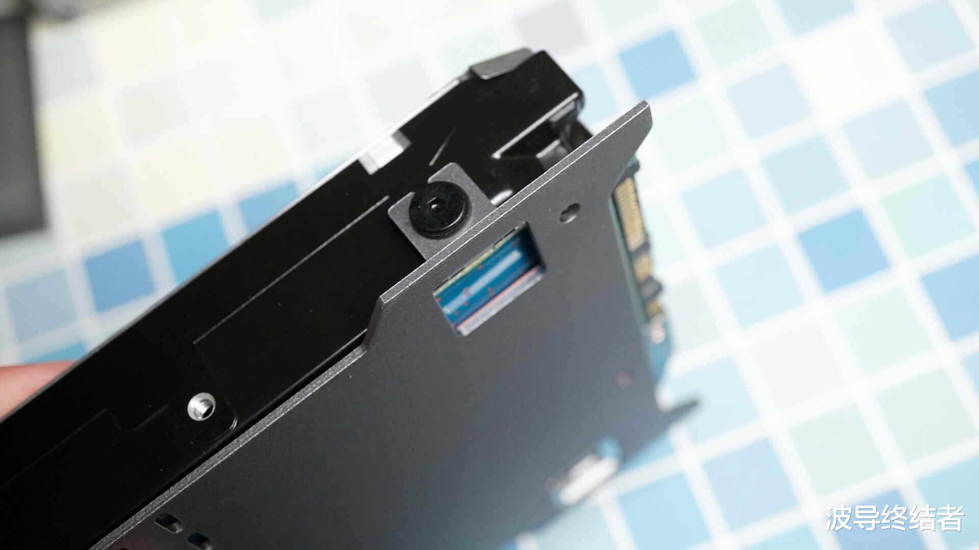 3.5英寸机械硬盘用黑色螺丝锁侧边,如果是2.5英寸的SATA盘则用小的螺丝从底面固定。值得一提的是,硬盘抽屉上的导热硅胶并没有保护膜,直接用就可以的。
