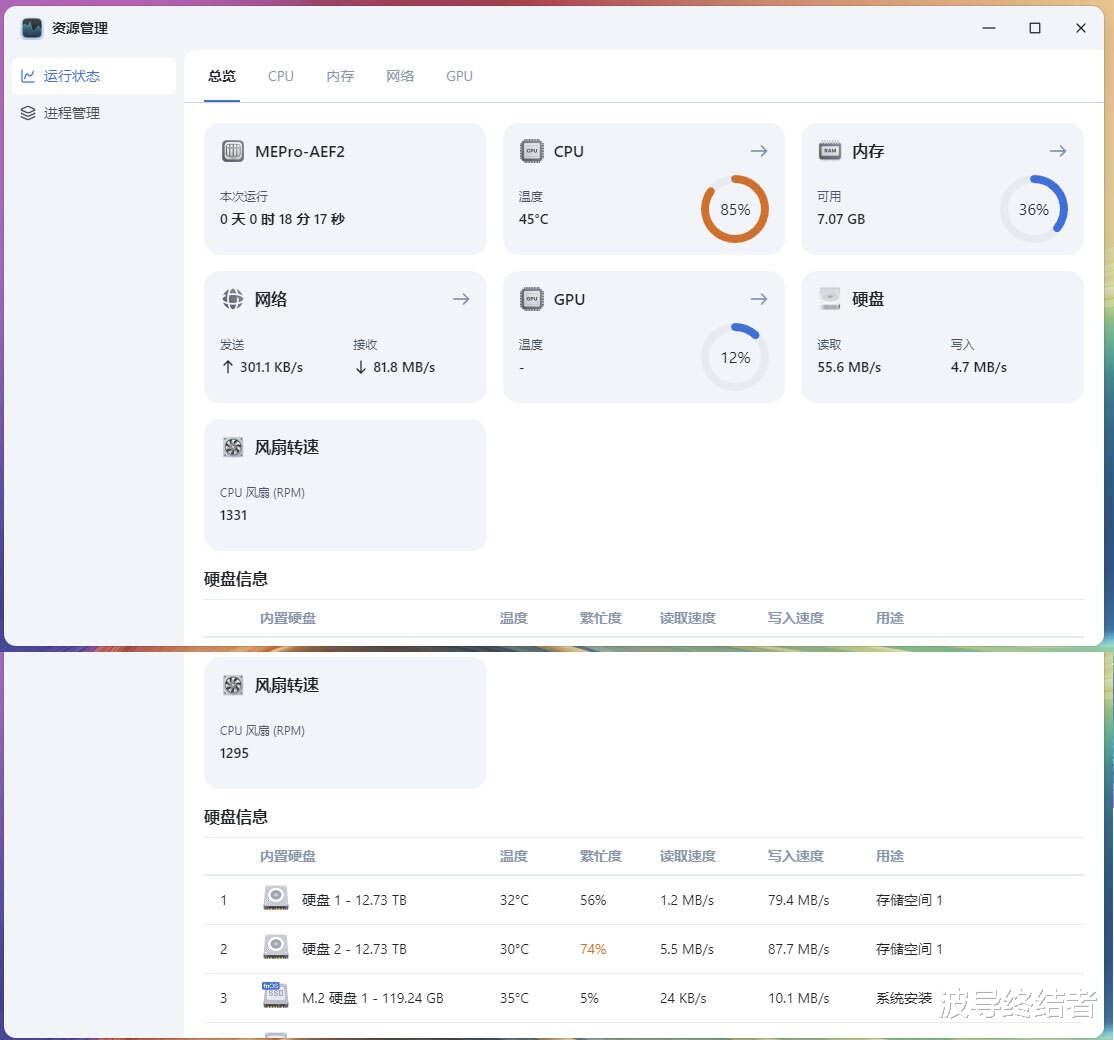 实际上,飞牛系统里还有很多更好玩更有用的功能,也支持Docker运行,赋予这台零刻Me Pro无限可能。不过把玩这些功能比较耗时间,后续玩明白了再单独另开一篇跟大家分享。官方给的亦PC亦NAS的定位还是很合适的,安装NAS直接用,搞WINDOWS或者软路由,甚至是弄多系统都很方便。N95处理器,12G内存,超强的散热能力与噪音控制,做工用料也都很棒。