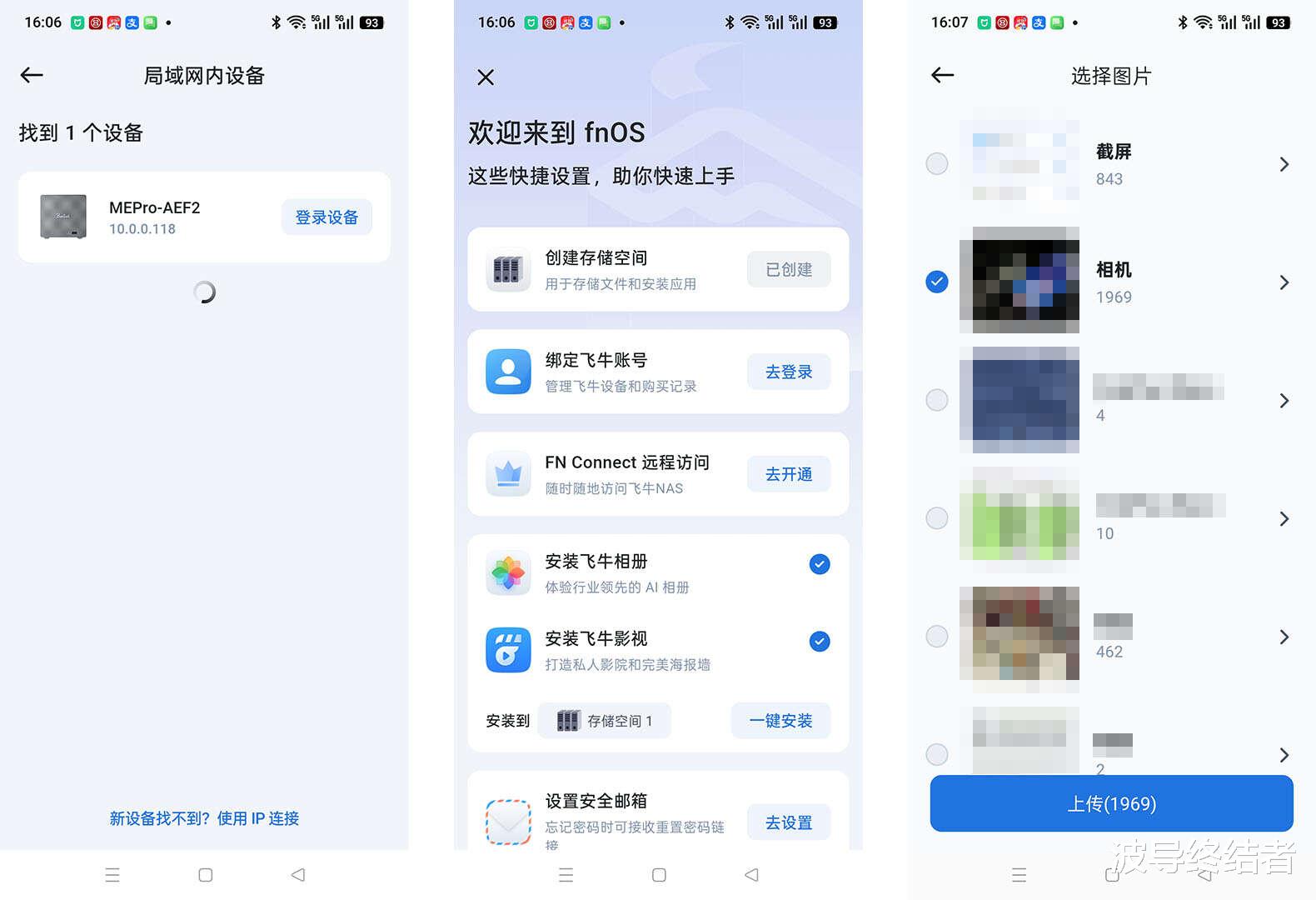 飞牛官方自带的影视和相册都是非常好用的工具,我这里的需求是相册备份,就先拿它来体验了。在NAS上创建完存储空间,在手机上安装APP之后,就可以往NAS上备份了。不过手机APP的相册功能,在备份的时候只能选文件夹,暂时没看到按文件类型过滤的选项,希望后面能加上。