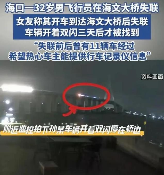 __2023年12月13日晚,海南海口,一位32岁的民航副机长孙某在海文大桥附近神秘消失。这位正值黄金年龄、事业有成的年轻人,怎么就这么人间蒸发了呢?