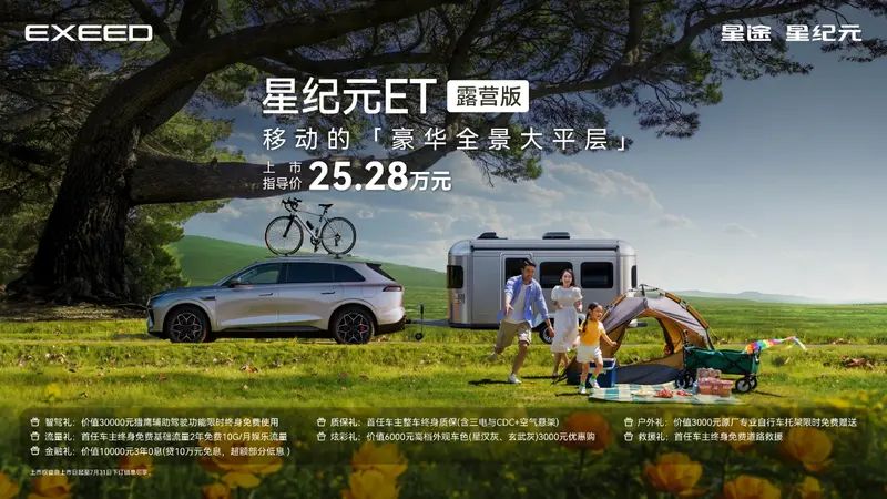 星途星纪元的品牌名称EXEED,源自超越的英文单词“EXCEED”,寓意着以好奇心去探索世界,以自信心不断突破自我。秉承“敢超越”的品牌精神,星途星纪元对豪华质感和极致体验有着不懈的追求,也正是在此精神的引领之下,星纪元ET露营版应运而生。星途营销中心执行副总经理范星表示:“星纪元ET露营版继承2025款ET宽敞舒适的空间、强劲动力与超长续航、百万级豪车底盘、超高的安全性能以及领先的智能辅助驾驶等全部优势,通过拖挂方式可以实现一台车满足用户城市通勤、周末露营、骑行等多种生活方式的诉求,工作日是旗舰座驾,周末是露营神器,堪称全场景移动生活平台,进一步延展了星纪元ET‘在一起去远方’的理念内涵!”
