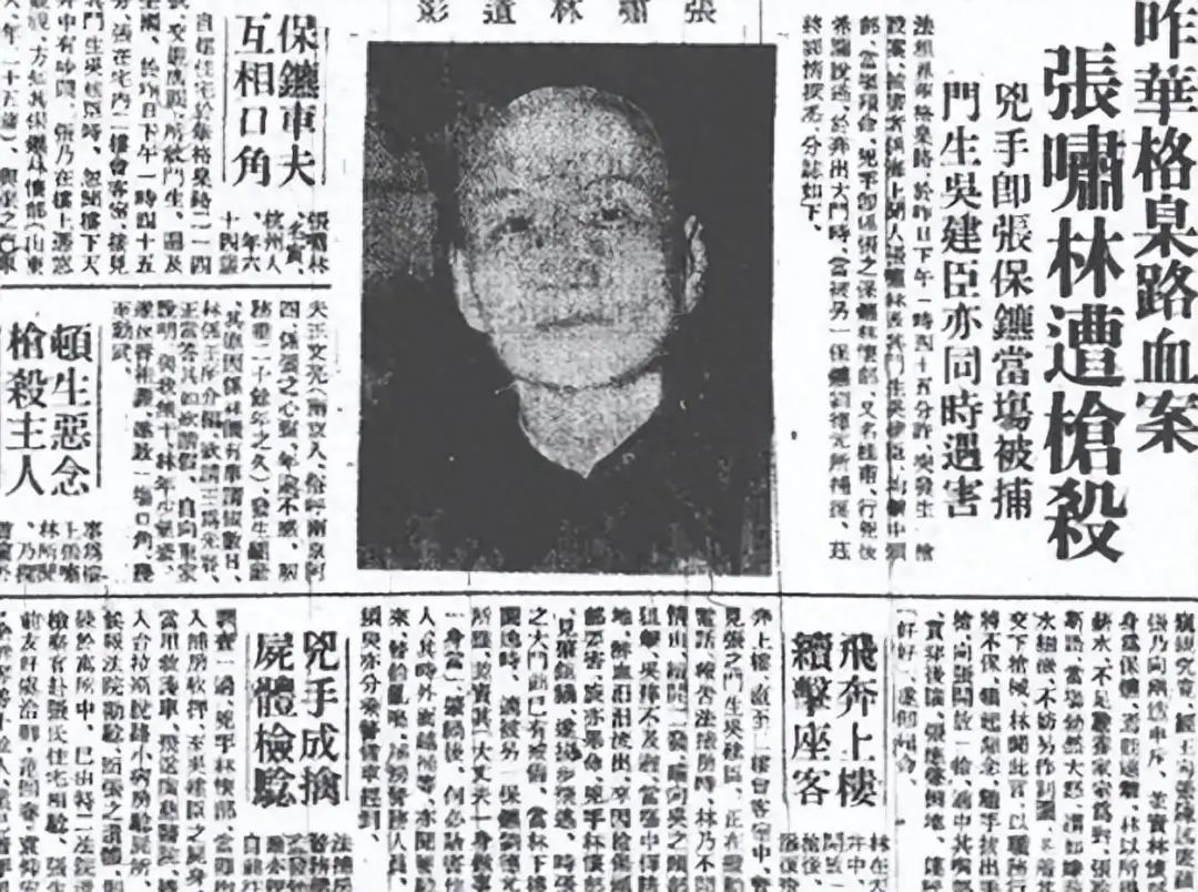 1940年8月15日,上海市的大量报纸上都刊登了一则相同的新闻,昨夜格臬路发生命案,张啸林遭保镖枪杀。