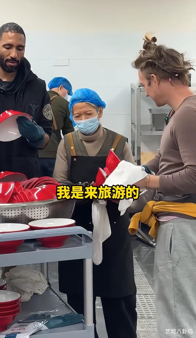 俩外国小哥吃完饭后,不仅主动付了饭钱,还留下来帮着洗碗。
