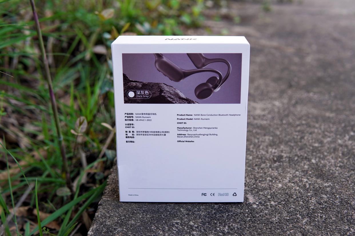 ▲南卡Runner 4采用的白底灰色的主色调包装,正面元素包含产品图、品牌名、品名、存储空间大小等信息,用户可以通过这些信息,比较直观地获取对这款产品的基础认知。