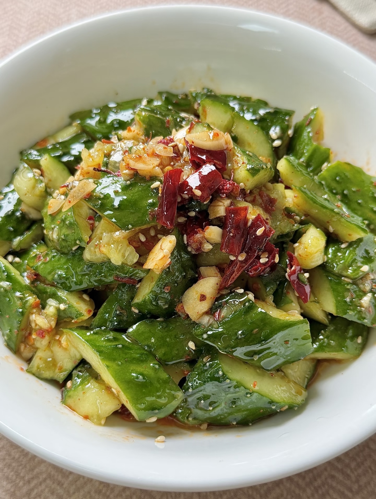 把调好的料汁直接淋在处理好的黄瓜上,用筷子或者戴着手套用手抓拌均匀,让每一块黄瓜都裹满料汁。这时候,你可以看到黄瓜瞬间变得油亮诱人,散发着迷人的香气。装盘,开吃!夹一块放进嘴里,黄瓜的清脆、醋的酸爽、还有那一抹芥末带来的“刺激”,瞬间在口腔里炸开,那种清爽感,简直让人欲罢不能!