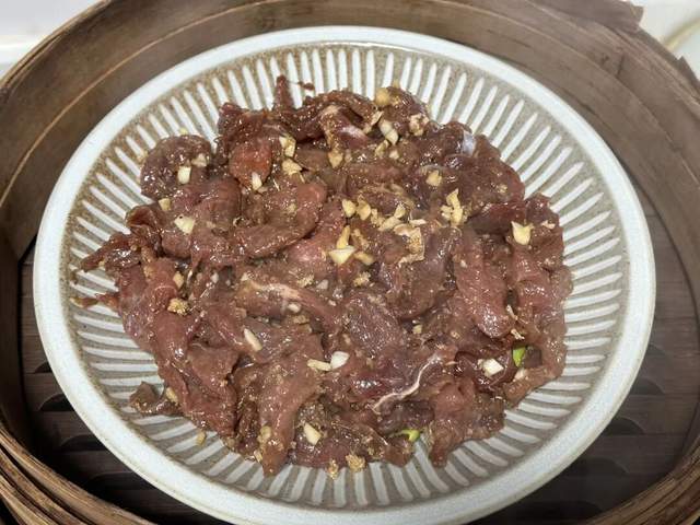 这道菜的搭配其实藏着不少小心思。牛肉选的是嫩而不柴的部位,切成薄片后简单腌一腌,蒸出来口感格外柔滑,还带着点恰到好处的嚼劲。毛豆呢,提前处理过,蒸透了之后软糯糯的,吸饱了牛肉的汤汁,味道特别足。