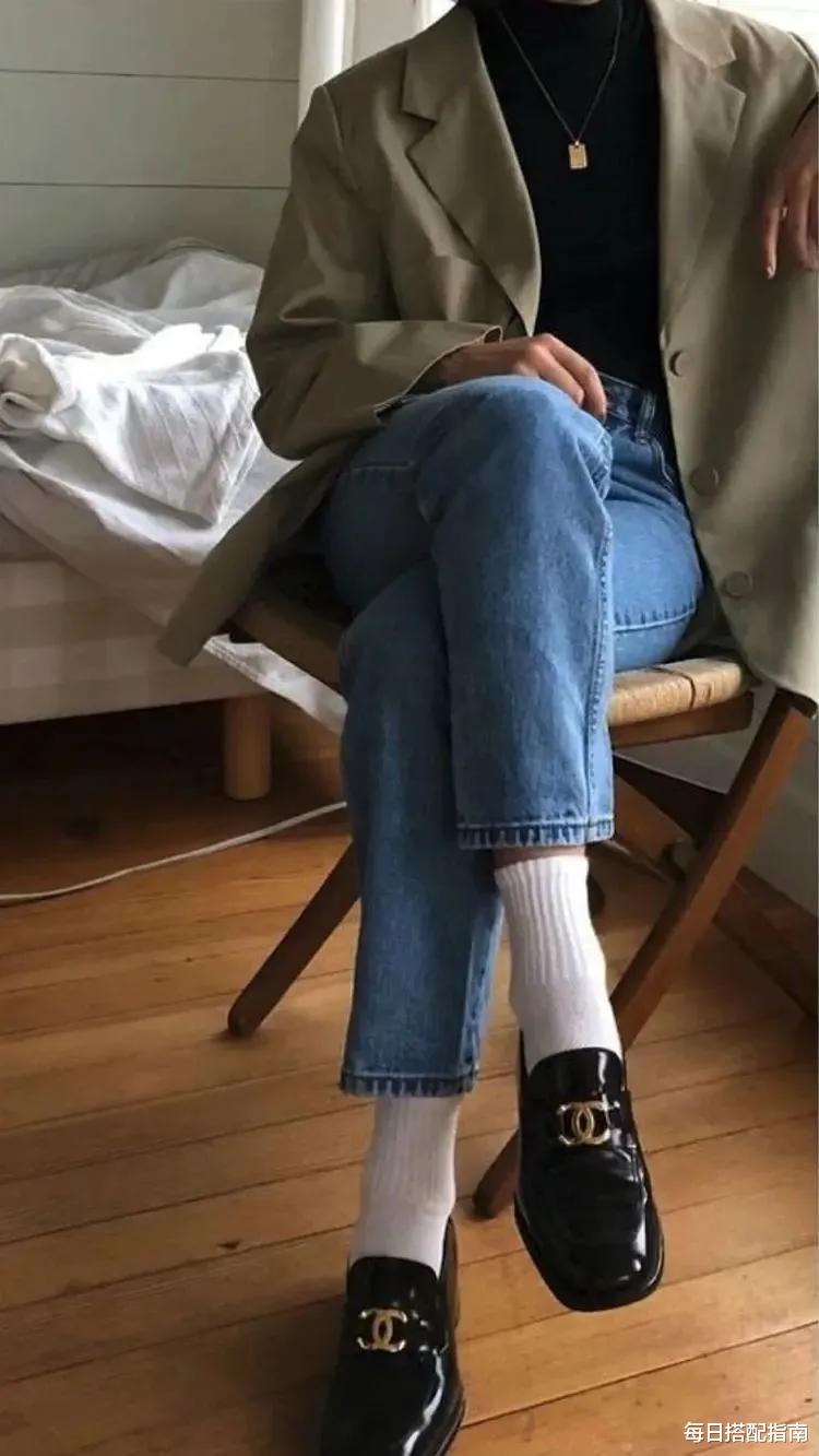 对于身高较矮的女生来说,乐福鞋可以通过“鞋袜一体”的穿搭技巧,打造隐形增高的效果。