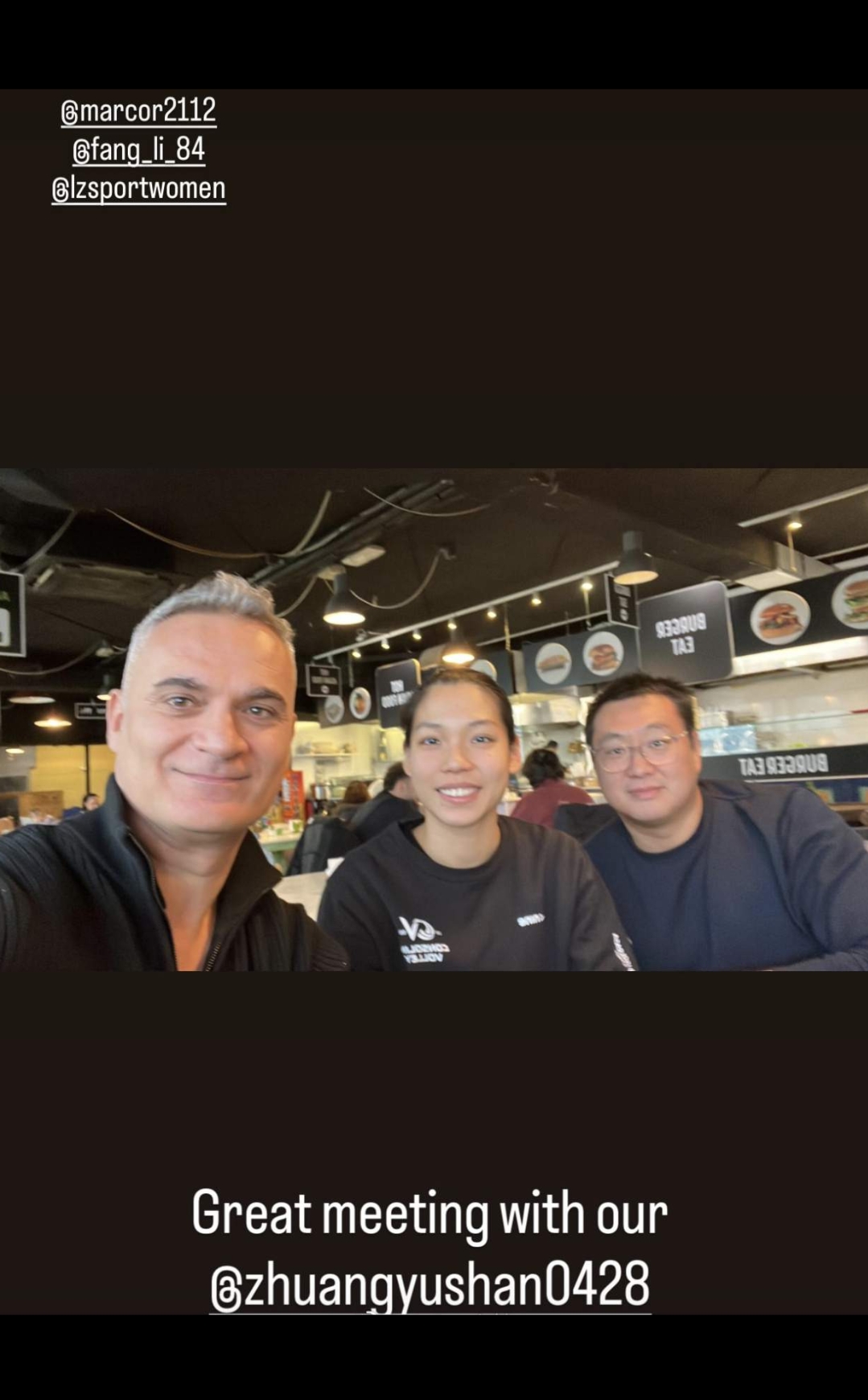朱婷经纪人马可与庄宇珊(右一为方岩的儿子)
