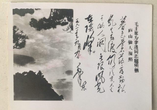 当年,一位名叫李进的女摄影爱好者在仙人洞这儿拍摄了好多的照片,一代伟人毛公对这些照片称赞不已,公开为之赋诗一首《七绝·为李进同志题所摄庐山仙人洞照》:“暮色苍茫看劲松,乱云飞渡仍从容,天生一个仙人洞,无限风光在险峰。”