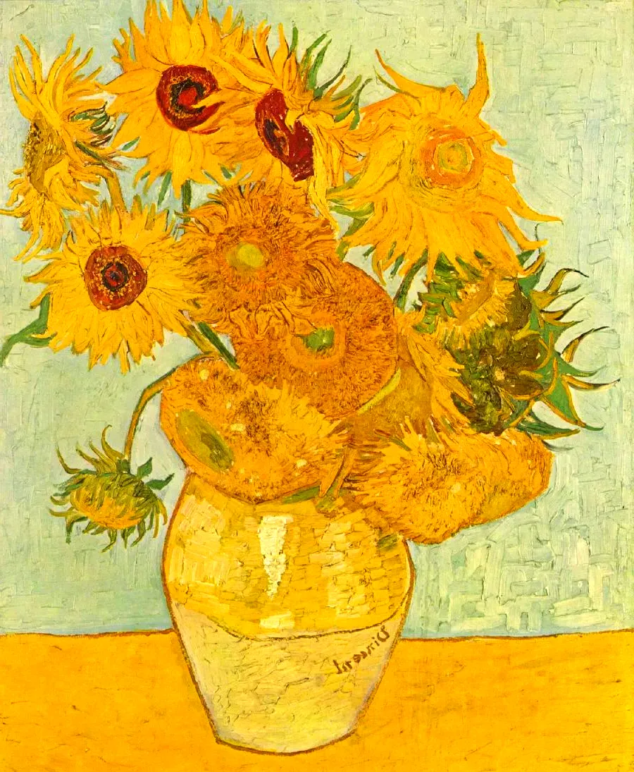 其实除了梵高,还有两位世界知名的名人,也深深喜爱着向日葵,背后还有特别动人的故事。第一位是法国画家保罗·高更,他和梵高是挚友,也是艺术上的伙伴,正是因为梵高对向日葵的痴迷,深深感染了他。1888年,梵高在法国阿尔勒小镇定居,一心想打造“画家之家”,便邀请高更前来同住,还特意创作了多幅向日葵画作,用来装饰高更的卧室,希望能用这份热烈的美好留住挚友。虽然两人后来因为艺术理念不同,争吵不断,高更最终选择离开,但向日葵早已成为他们友谊的印记。在梵高逝世11年后,贫病交加的高更特意请巴黎的朋友寄来向日葵种子,栽种在自己的花园里,还绘制了《有向日葵的静物》这幅画,以此纪念那段时光和逝去的挚友,他在笔记里也曾写道:“我至今依然满脑子都是向日葵”,这份因友谊而生的偏爱,让向日葵多了一层温暖的意义。