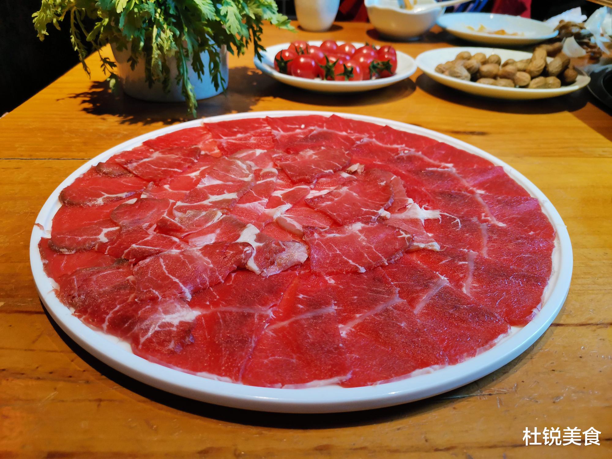 对于那些爱吃肉的人们来说,别总去拿那些肥牛卷、羔羊肉,更别去吃所谓的乌鸡卷。这些肉类全是冷冻后再机器切片,哪怕是真材实料,本身已经不新鲜了。更甚者还有那种合成肉、造假肉等,食材来源也是五花八门。所以说,对于嗜肉者还是多挑选那种手切肉片,像手切牛肉、手切羊腱子肉等。这些手切肉片大多食材新鲜,现切现摆盘,不管是食材质量,还是味道口感,都吃得让人放心。