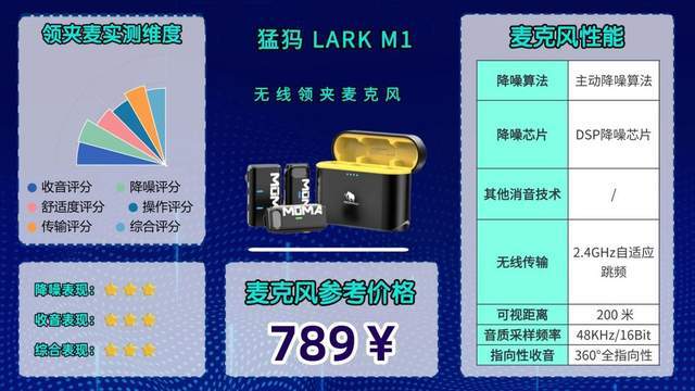 机型亮点综述:48kHz/16Bit采样率保障了基础音质,360°全指向拾音设计,能清晰捕捉人声,多人场景下每个人的声音都能较好收录。2.4G自适应跳频技术很靠谱,200米内移动拍摄几乎不会断连。主动降噪+DSP智能降噪双重加持,能有效过滤室内外的基础环境杂音,不过只能应对轻度杂音,极端大风或嘈杂环境下,就得搭配防风罩使用;而且没有显示屏,参数只能通过指示灯判断,不够直观。