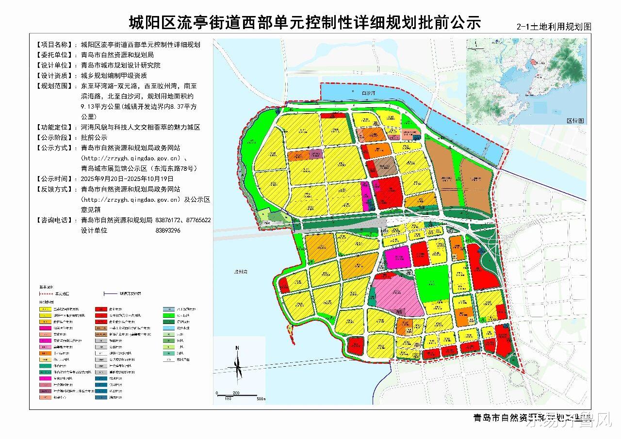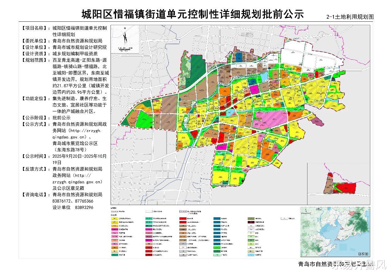 9月20日,城阳区流亭街道东西北部单元、惜福镇街道单元控制性详细规划批前公示。