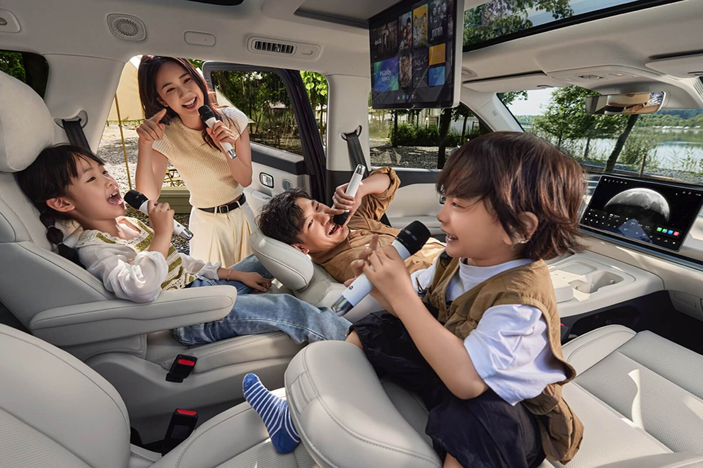 此外,车辆还配备了21扬7.1.4杜比全景声豪华音响。这样的音响配置,让车内的影音娱乐系统更加出色。除了各大视频娱乐软件以外,还加入了无麦K歌功能。让车内空间成为全家人的移动KTV,增添旅途的乐趣。
