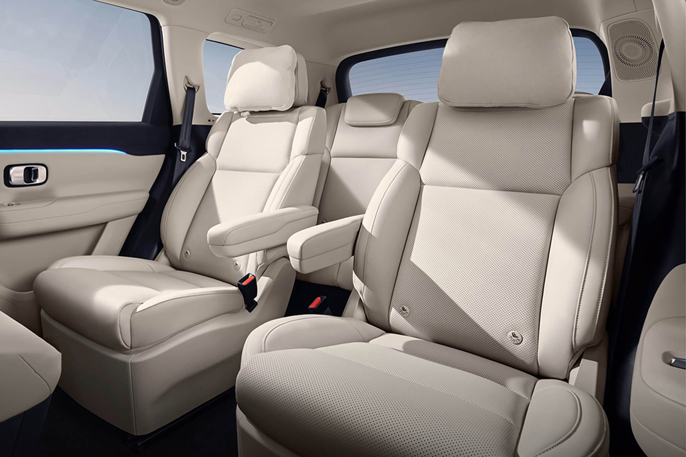 在舒适性方面,座椅采用7层结构设计,座椅材料比较厚实,具有较强的包裹性和支撑性。前排座椅标配记忆及主驾迎宾功能,能够给驾驶者带来便捷和舒适的使用体验。值得一提的是,二排舒享独立座椅支持加热、通风功能,并拥有最大145°躺姿。这样的设计,能让乘客在长途旅行中能够找到更加舒适的坐姿,缓解旅途的疲劳。