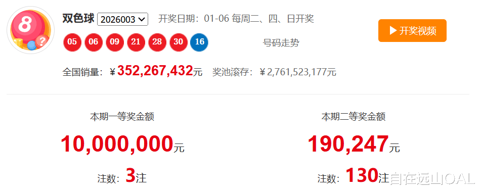 各位彩友大家好,刚刚结束的双色球第26003期开奖结果已经出炉,本期全国共开出3注一等奖,单注奖金高达1000万元。今天我将从专业角度为大家深度解析本期开奖号码,并对26004期的号码走势进行精准预测。