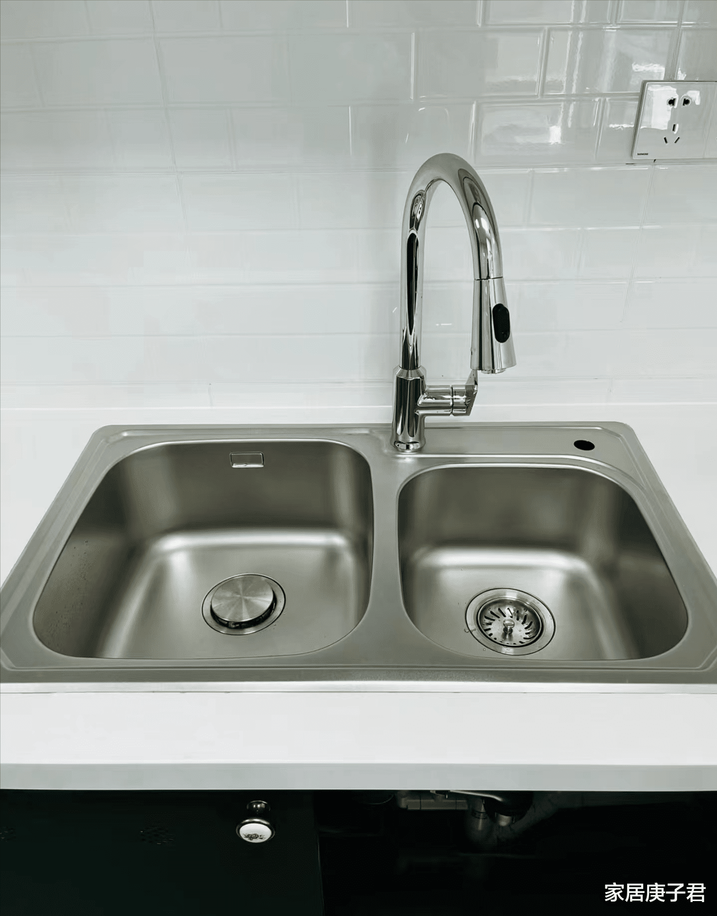 如果您家橱柜面板的长度不足1.2米,那么我建议您最好不要考虑双槽设计。这并不是说双槽不好,而是因为空间限制,双槽设计可能会带来一些不便。