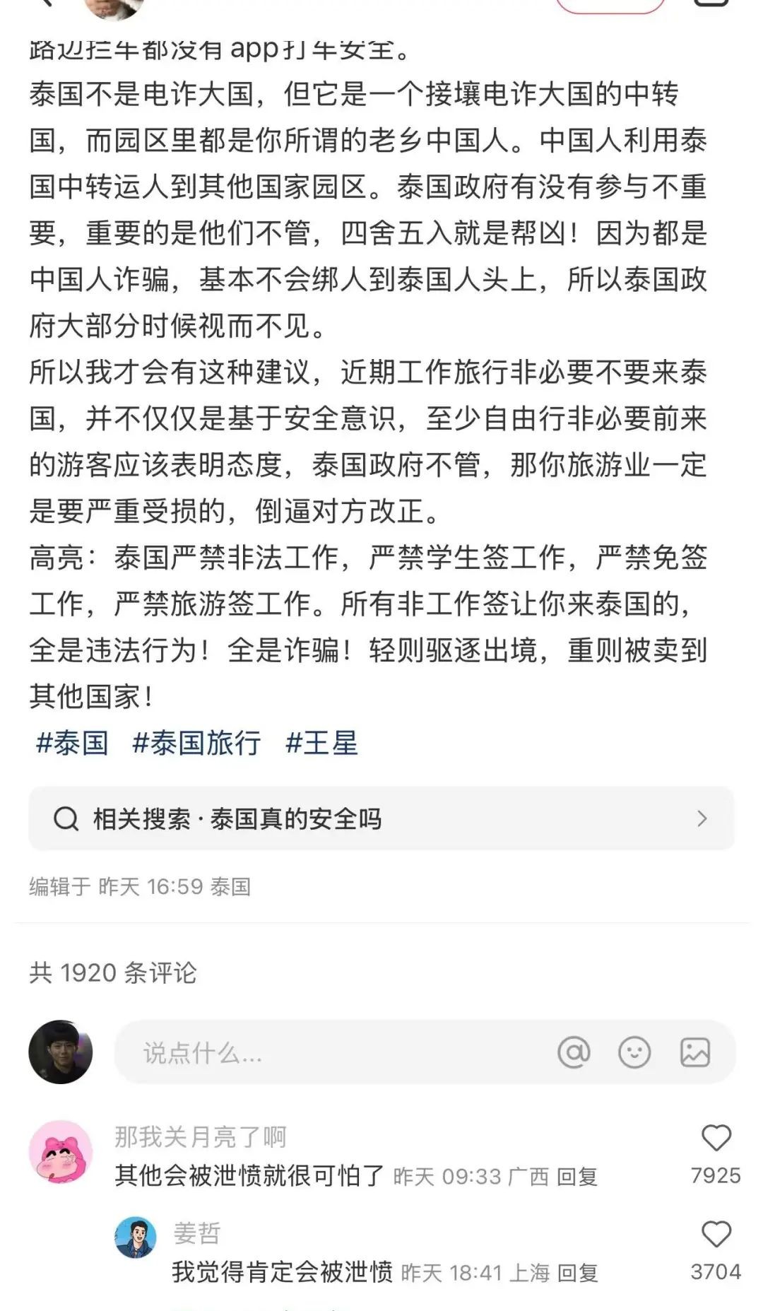 最近好多人打算去泰国玩,可听说演员王星在泰国被骗,还被绑架到缅甸的电诈窝点,这事儿一出,不少人直接取消了订单。这算小题大做吗?想想看,全世界那么多地方好玩儿,为啥非要往枪口上撞呢?