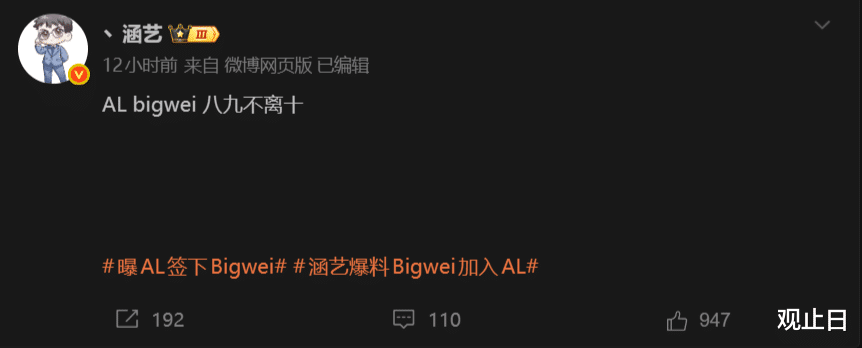 01 爆料实锤:Bigwei八九不离十,井盖打包带走最先放出消息的是知名爆料人“涵艺”,他直接了当地表示:“AL.Bigwei八九不离十” 。