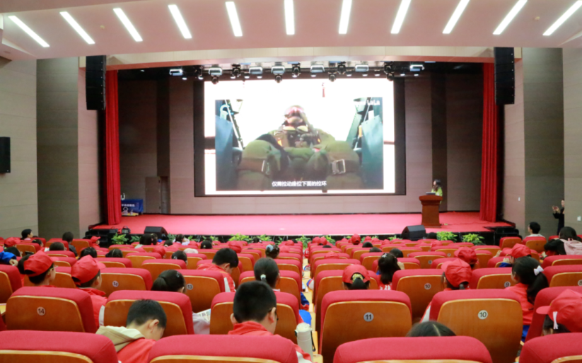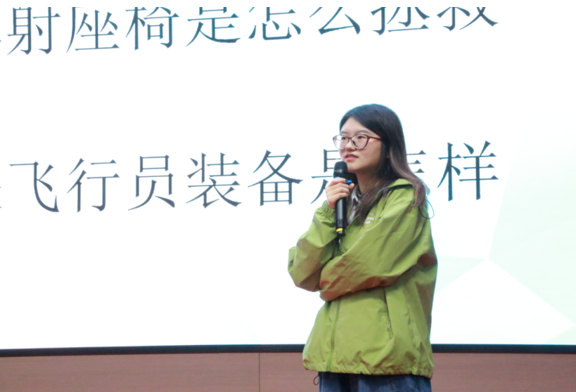 讲堂伊始,在纪念中国人民抗日战争暨世界反法西斯战争胜利80周年大会上空中梯队以多种机型编队接受检阅的一段视频,和弹射座椅的工作流程视频,瞬间吸引了同学们好奇的眼神。当飞机遇险时,飞行员只需拉动弹射手柄,座椅便会启动一系列自动化操作:束缚装置固定身体、抛离舱盖、弹射离机、降落伞展开,飞行员缓缓落地。同学们惊叹于这一连串精准的“生命接力”。