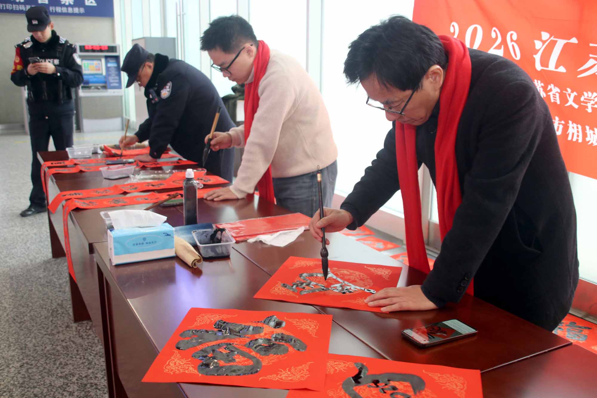 (记者 王建康 摄影报道) 2026年2月1日,苏州火车北站人头攒动,却因一抹浓郁的“中国红”与墨香,多了层温暖的新春氛围——“福至运来 情满旅途”江苏省千名书法家送万福进万家活动(苏州北站)在此温情启幕,书法家们挥毫泼墨,为返乡旅客与市民递上满载祝福的“文化年货”。